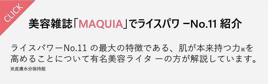 - ①ライスパワーNo.11は皮膚水分保持能の改善効果が認められた日本で唯一の医薬部外品の有効成分。