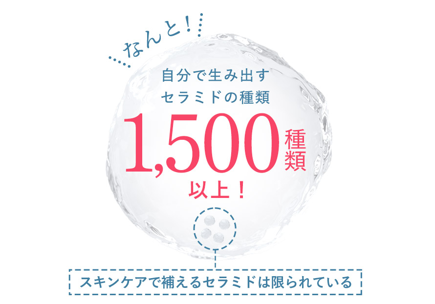 また人の肌には1人1人違った組み合わせで1,500種類以上のセラミドが存在しているのが現実。
