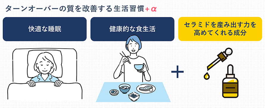 ターンオーバーの質を改善するためには、快適な睡眠、健康的な食生活などが効果的…それと…